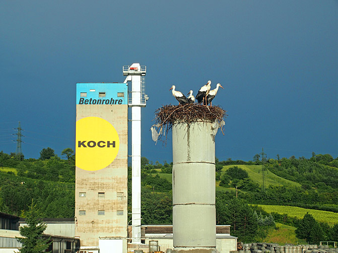 Annually, in the spring, the “Koch Storks” arrive as guests at the company location and nest on a tower at the site - visible from afar, in the meanwhile legendary and popular with both the local population and the company owners. When the young storks are large enough and have adequately practiced their flying skills on the company's premises, the stork family retreats to warmer climes in the autumn, only to return the following year.